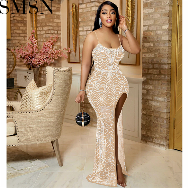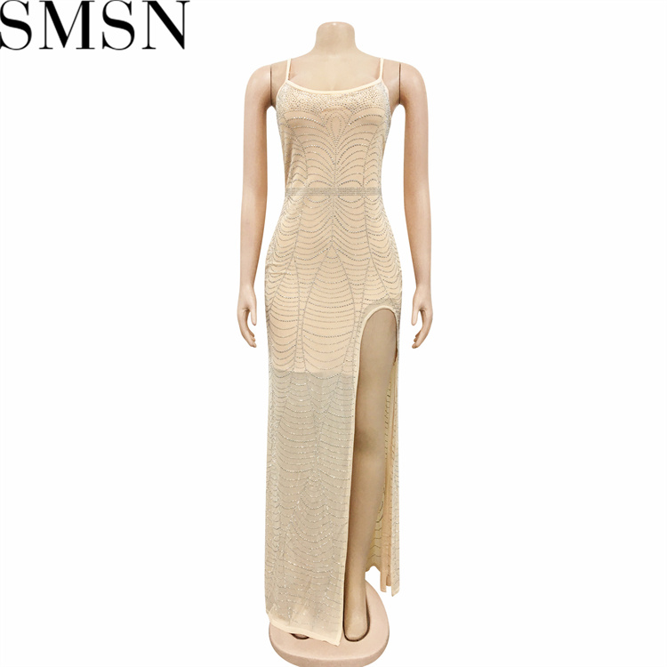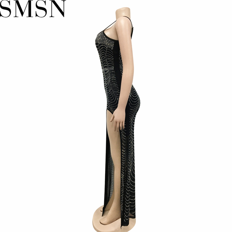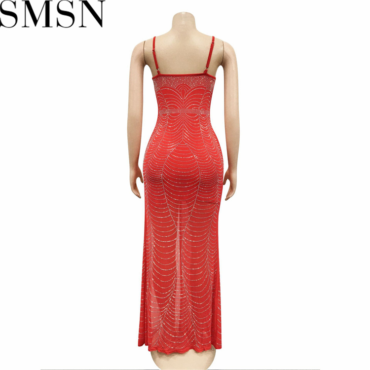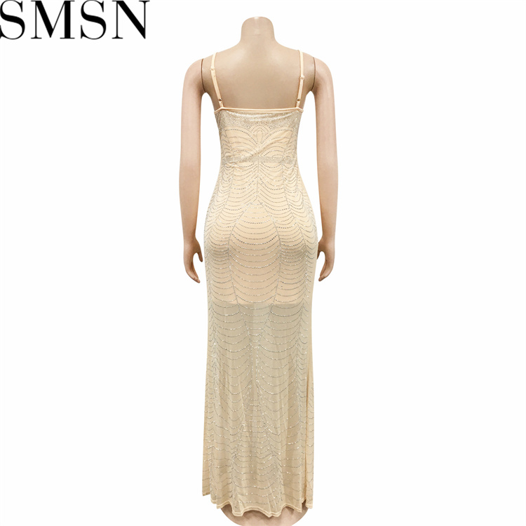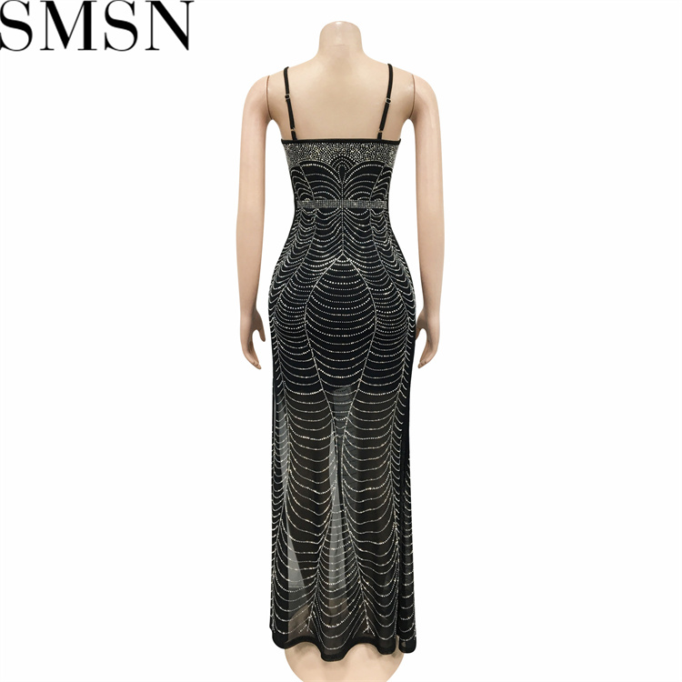 Casual Dress Amazon nightclubs hot rhinestone sexy see through wrapped chest midi dress
