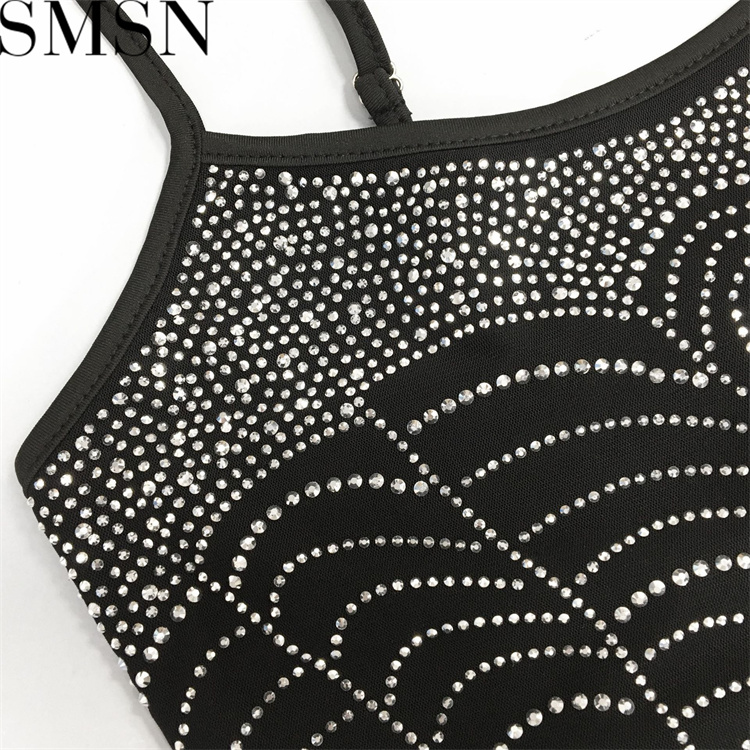 Casual Dress fashion solid color strap irregular rhinestone dress for women