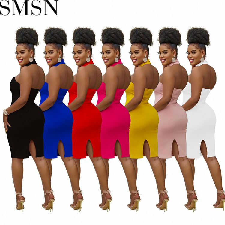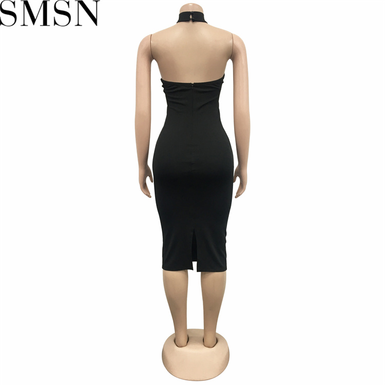 Plus Size Dress fashion pure color halter wrapped chest sleeveless cold shoulder dress