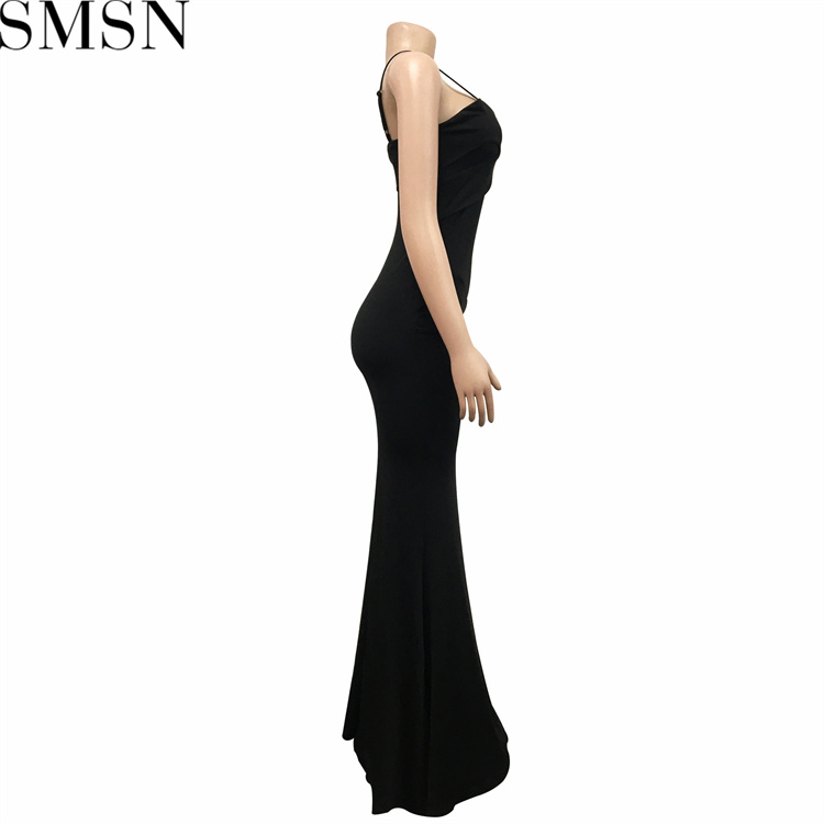 Plus Size Dress European and American fashion women wear suspender pleated wrapped chest solid color dress
