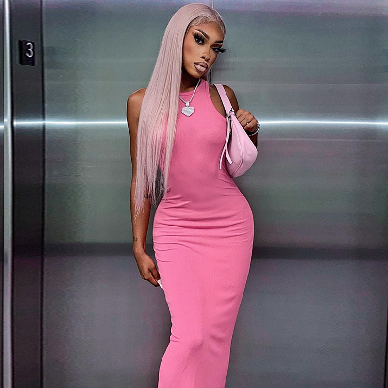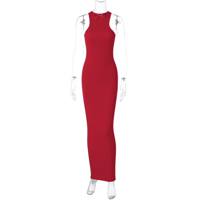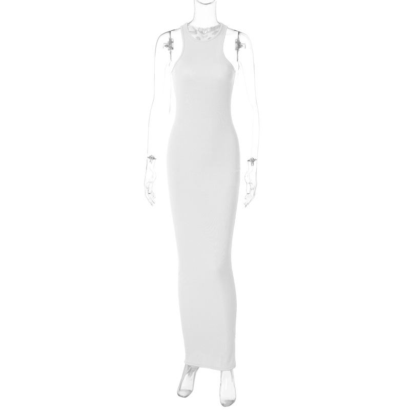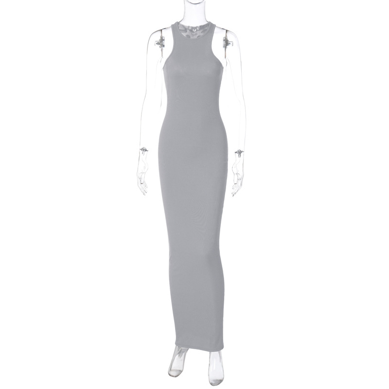 Fashion Solid Color Sleeveless Round Neck Slim Dress For Foreign Trade