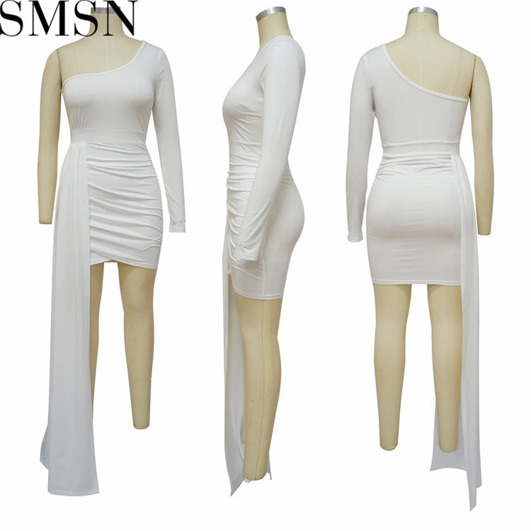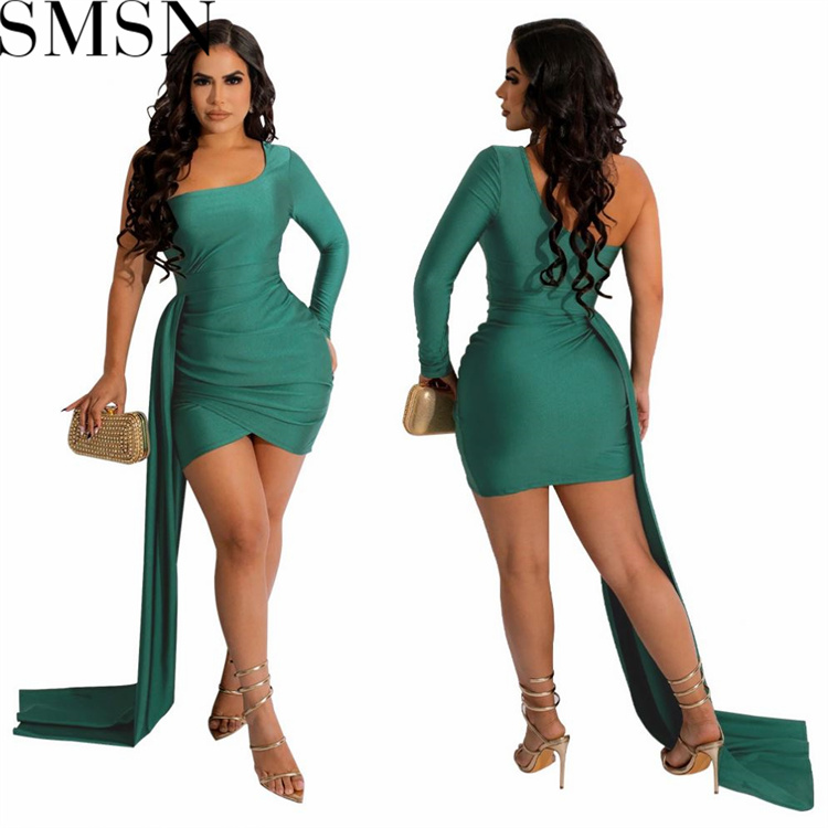 Plus Size Dress Amazon autumn solid color one shoulder diagonal collar sexy slim dress