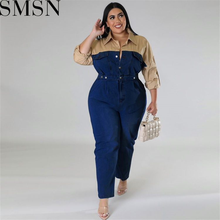 Plus Size Dress autumn best selling mesh v neck patchwork right angle shoulder dress